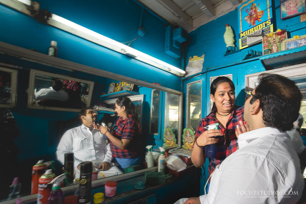 Apart from the prominent places of the city, they chose few specific places that includes fish market for they decided to explore the places they haven’t been. Since these spots weren’t pre planned we readily welcomed the challenges. More than posing the pictures, the couple got lost in the ocean of joy. The shots at the Napier bridge revealed the shades of a romantic bliss. As this couple shoot happened in the city of chennai, they couldn’t miss the Marina beach. The shots in the seashore and lighthouse added elegant memories to their album. The fun they had from the splashing waves was pretty cute to watch. The boats on the seashore stimulated an idea in us. We snapped the pictures right away utilising them as backdrop. The more enthusiastic they're the more engaged we were.